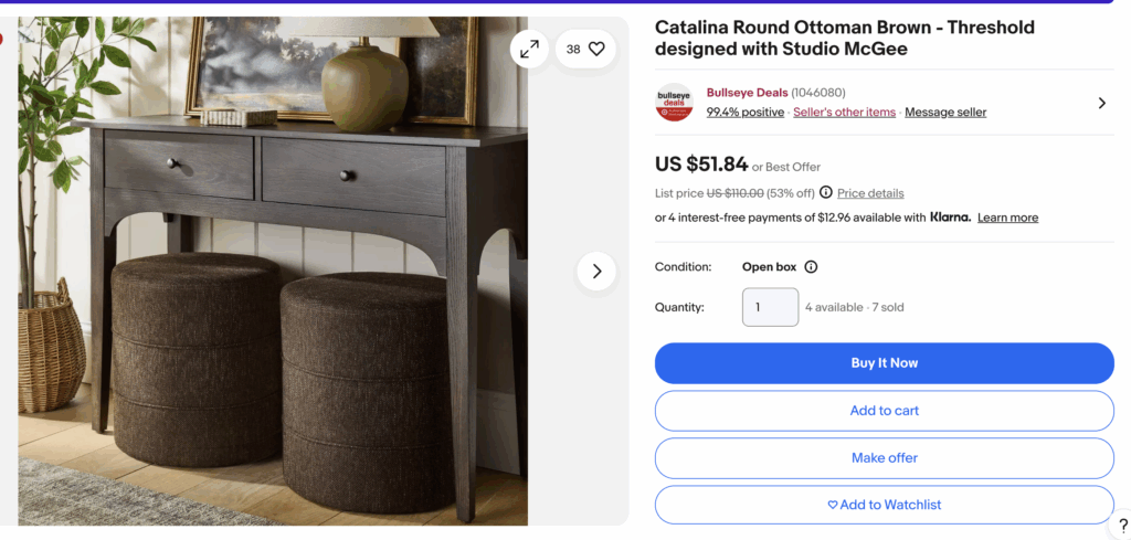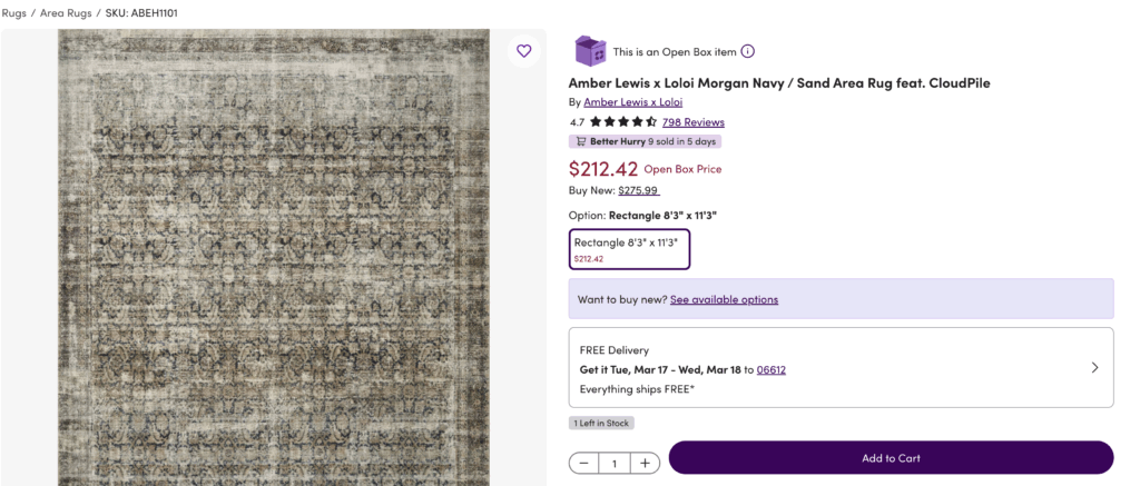 I also use this trick on eBay by shopping a brand name + open box, i.e. “Loloi open box” or “Visual Comfort open box.”