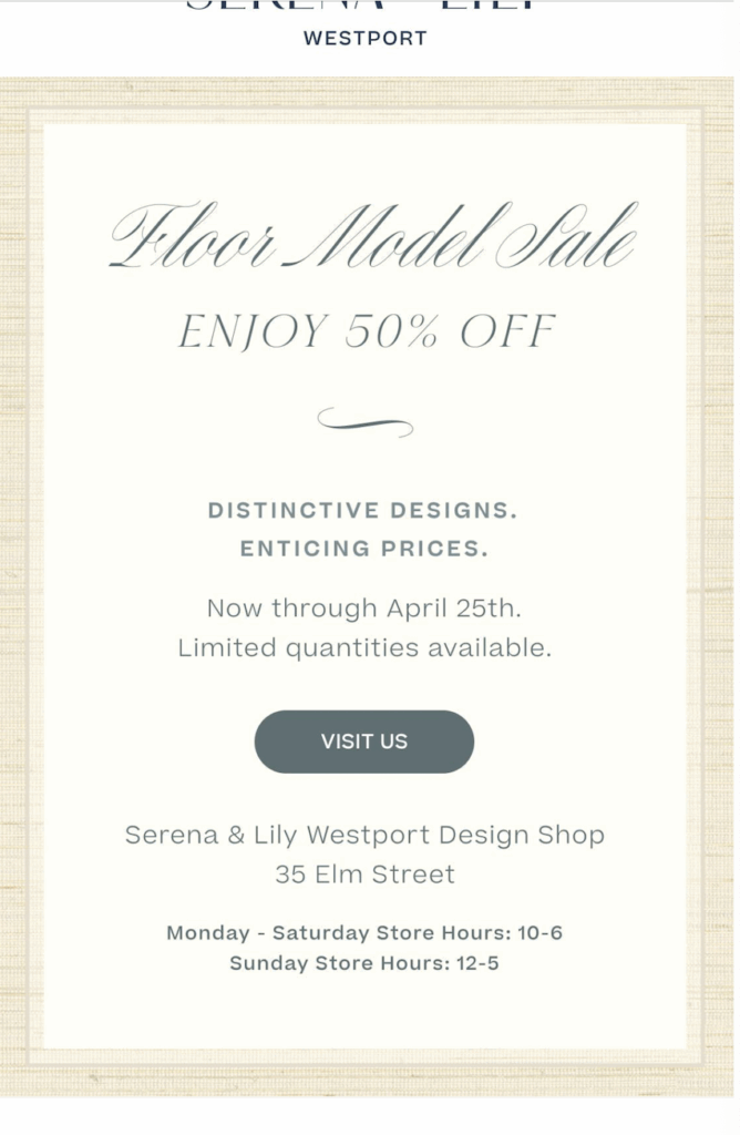 Lots of big retailers now have an open-box deals section of their site, including Wayfair, Pottery Barn, and West Elm. These items are usually returns that the store can no longer sell new, but are generally perfectly fine. I purchased a brand-new custom arm chair from Wayfair’s open box section for about 30% off, which was a big discount considering the chair was $800.